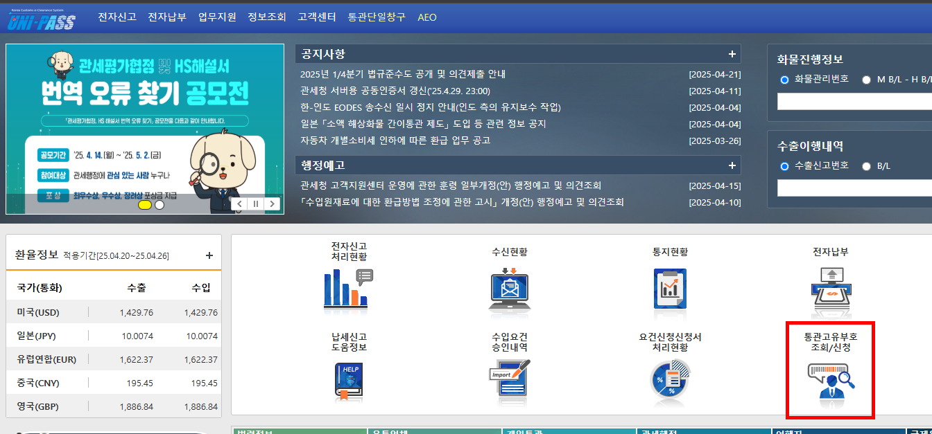 관세청 유니패스 홈페이지 접속하여 통관고유부호 조회/신청 메뉴로 손쉽게 확인 가능 합니다!