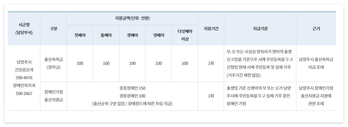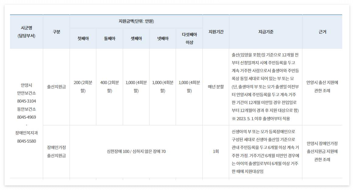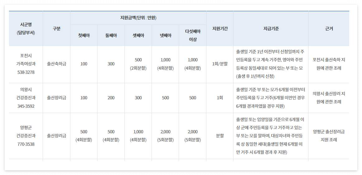 - 지원금액 출생아 1인당 50만 원 지역화폐 지급