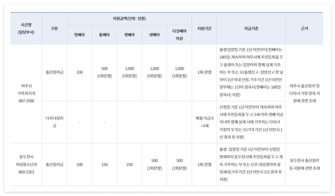 거주 요건이 있는 경우 출생 전부터 해당 지역에 거주해야 지원받을 수 있습니다.
