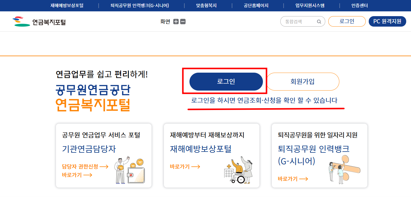 사진 = 공무원연금공당 (연금복지포털바로가기 선택)