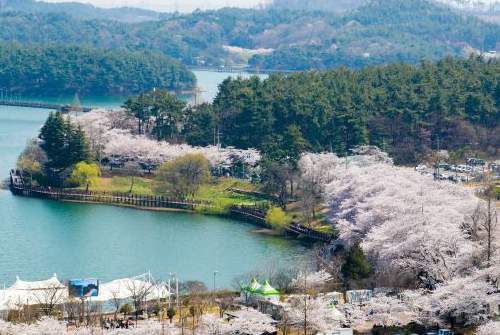 호수길을 따라 벚꽃이 터널처럼 피어있어 사진 찍기 좋은 명소입니다.