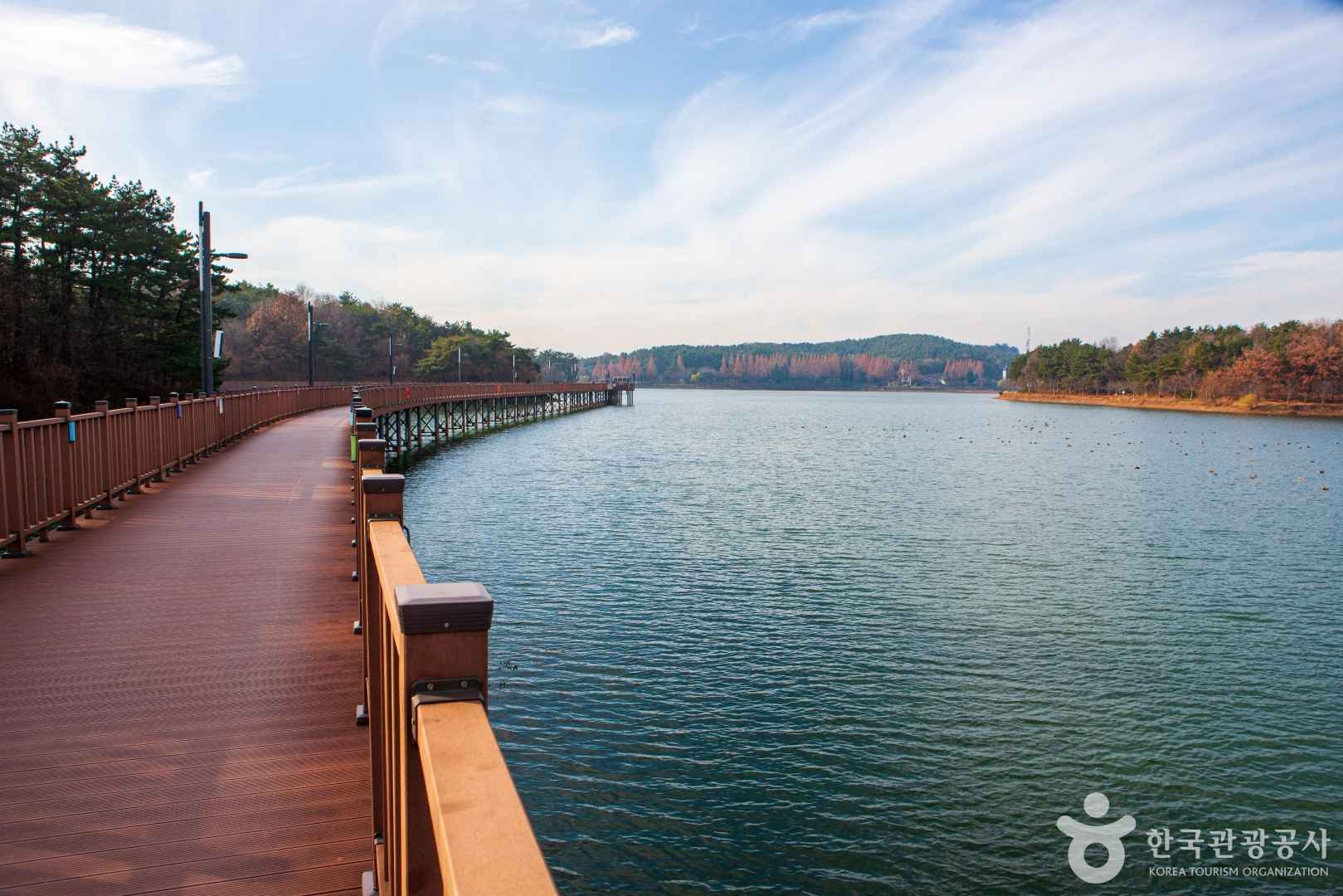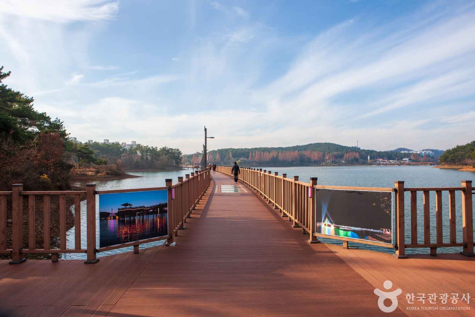 호수길을 따라 벚꽃이 터널처럼 피어있어 사진 찍기 좋은 명소입니다.