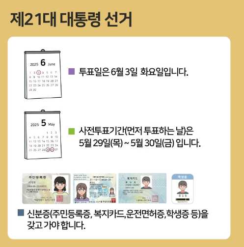 이번 대선은 윤석열 전 대통령 탄핵 이후 치러지는 조기 대선입니다. 헌재 결정에 따라 6월 3일 본 투표가 진행되며, 사전투표는 단 2일간만 가능하니 꼭 기억하세요!