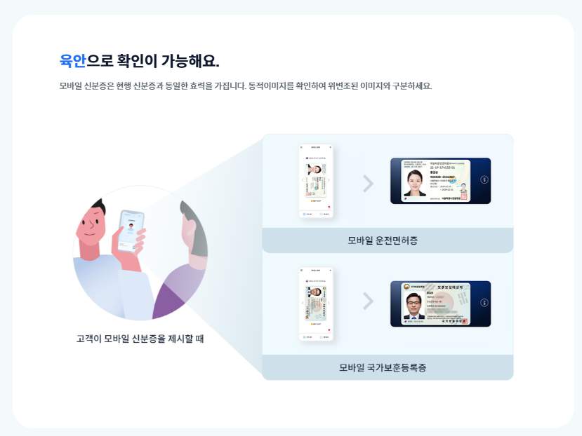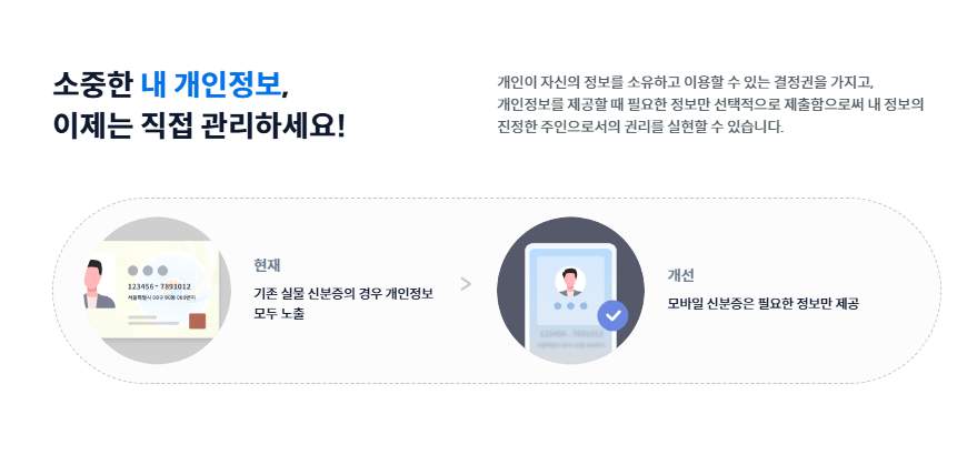 - 휴대성: 스마트폰 하나로 신분증을 대체할 수 있어 지갑을 따로 소지할 필요가 없습니다.