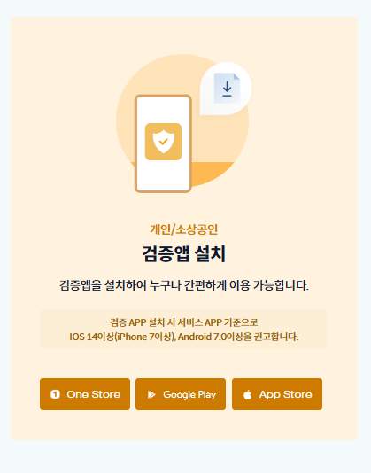 - 본인 명의의 휴대전화로 로그인 후, 공동인증서나 간편 인증(네이버, 카카오 등)으로 본인 인증을 완료합니다.