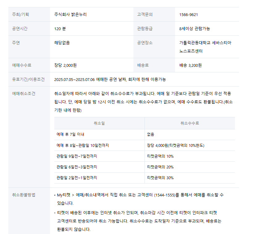 • 공연장소: 가톨릭관동대학교 세바스티아노스포츠센터