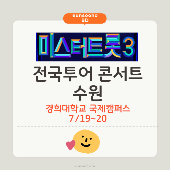 '미스터트롯3' 전국투어 콘서트 수원 공연은 트로트의 매력을 한껏 느낄 수 있는 특별한 무대가 될 것입니다. TOP7의 열정적인 무대와 수원의 풍부한 문화가 어우러져 잊지 못할 추억을 선사할 이 기회를 놓치지 마세요.