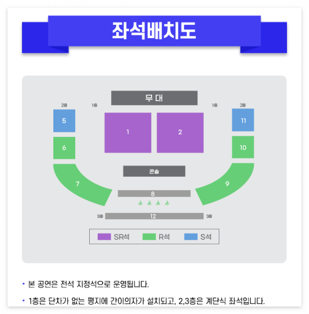 - 공연 예절: 쾌적한 공연 관람을 위해 공연 중 이동을 자제해 주시고, 공연장 내에서는 사진 및 동영상 촬영이 금지되어 있습니다.