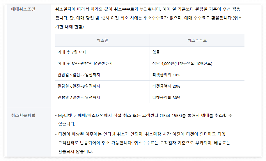 인터파크 티켓 예매/취소 홈페이지 바로가기 >>