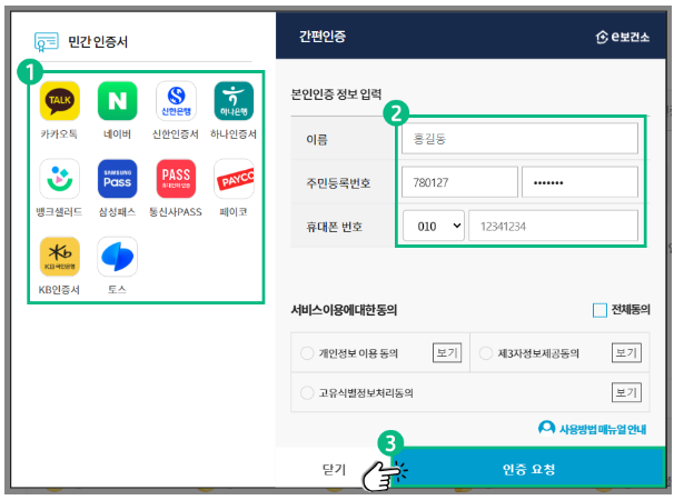 공공보건포털에서 보건증을 발급받으려면 본인 인증 절차가 필요합니다. 아래 방법 중 하나를 선택해 인증하면 됩니다.
