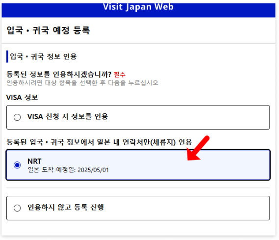 22) "이 입국, 귀국 정보를 인용"을 선택합니다.