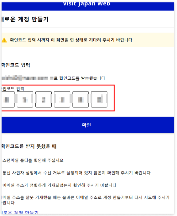 4) 입력한 이메일 주소로 전송된 코드를 확인하고 입력합니다.