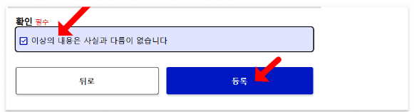27) 최종적으로 입력 결과를 확인하고 체크박스에 체크하고 등록을 누릅니다.