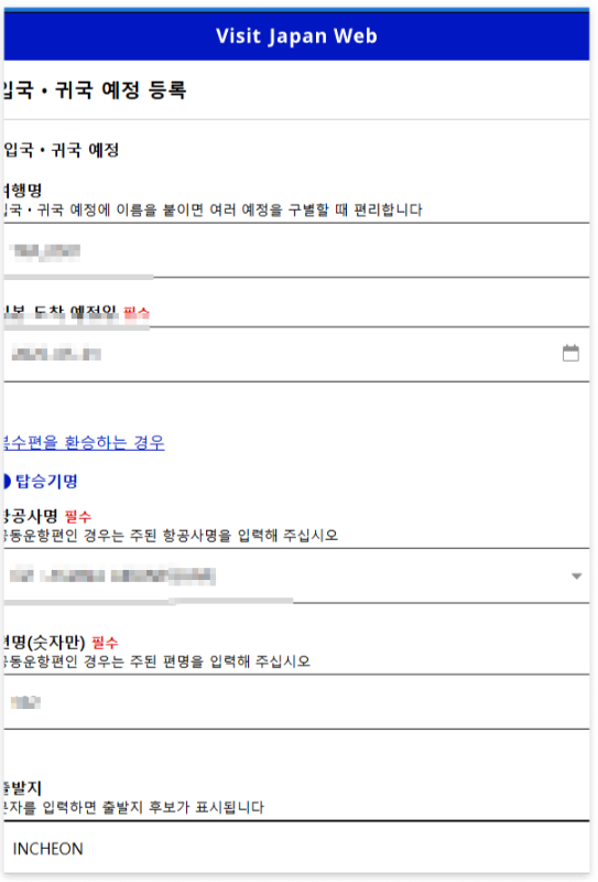 - 출발 국가와 일본 도착 공항을 선택합니다.