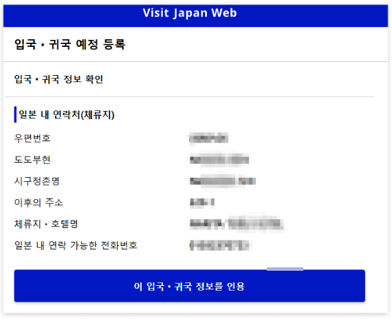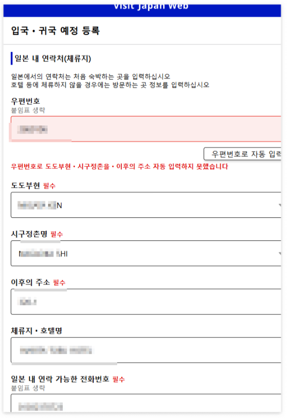 - 체류 예정 주소(호텔, 숙소 등) 입력
