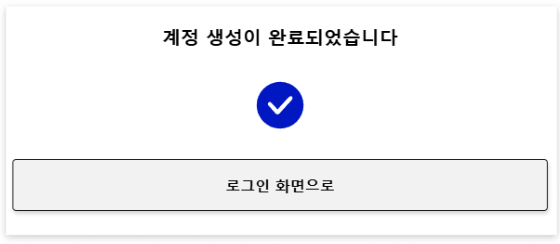 5) 계정 생성 완료 확인 후 로그인 화면으로 이동합니다.