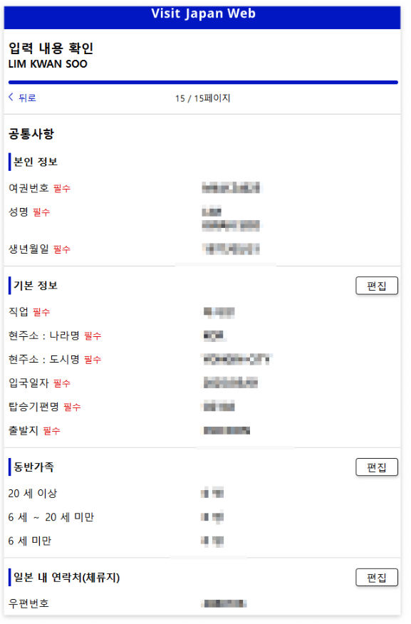 - 여권 정보 입력 시 실수하지 않도록 주의