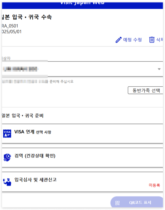 - 일본 공항 도착 후 입국 심사 및 세관 신고 시 해당 QR 코드를 제시하면 됩니다.