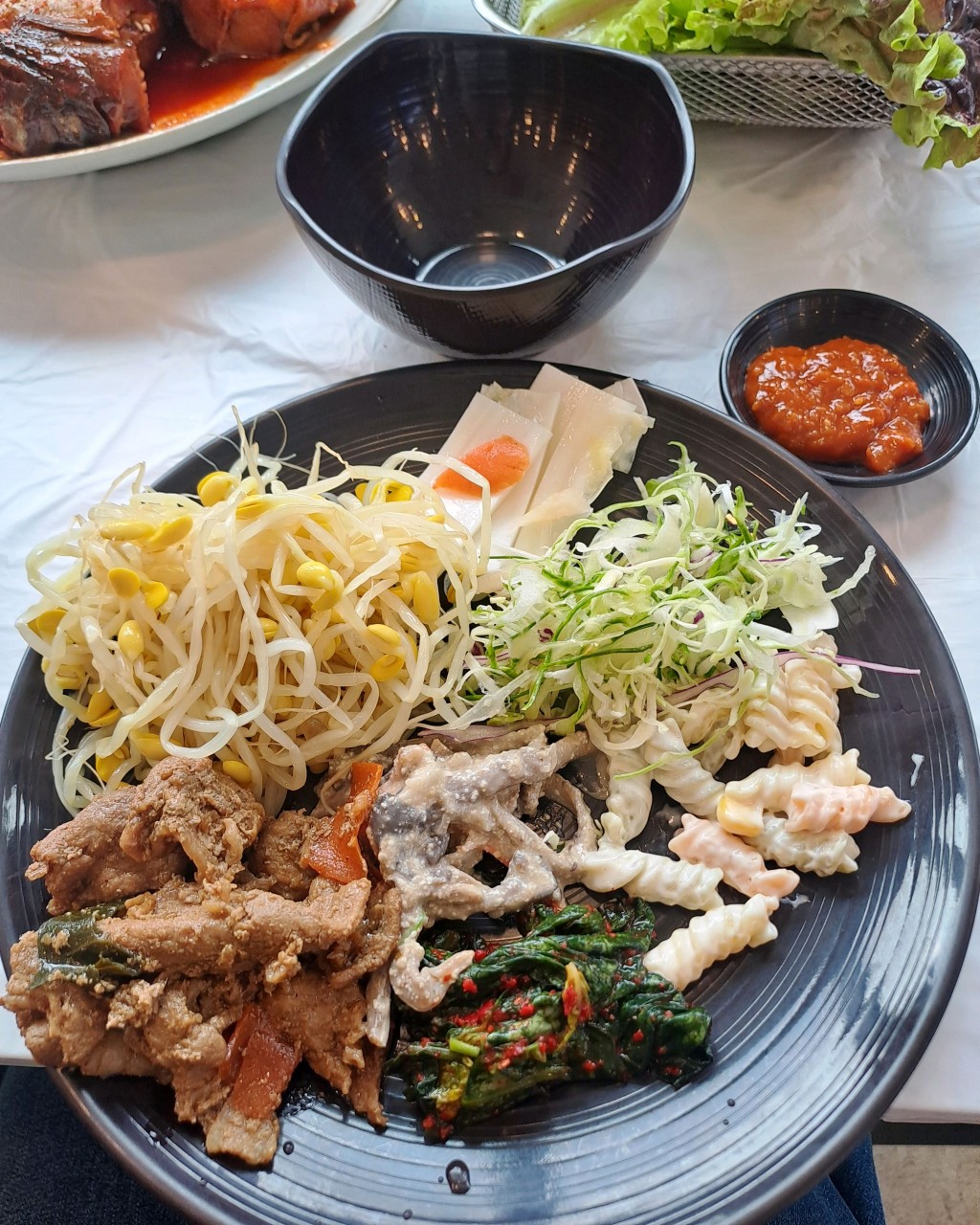 이곳에서는 코다리조림뿐만 아니라 밥, 국, 숭늉, 샐러드, 수정과 등 다양한 구성의 셀프바가 함께 제공됩니다. 각종 반찬도 준비되어 있어 식사의 만족감을 더욱 높여줍니다. 남녀노소 누구나 만족할 수 있는 구성으로 가족 단위 방문객에게도 적합한 곳입니다.