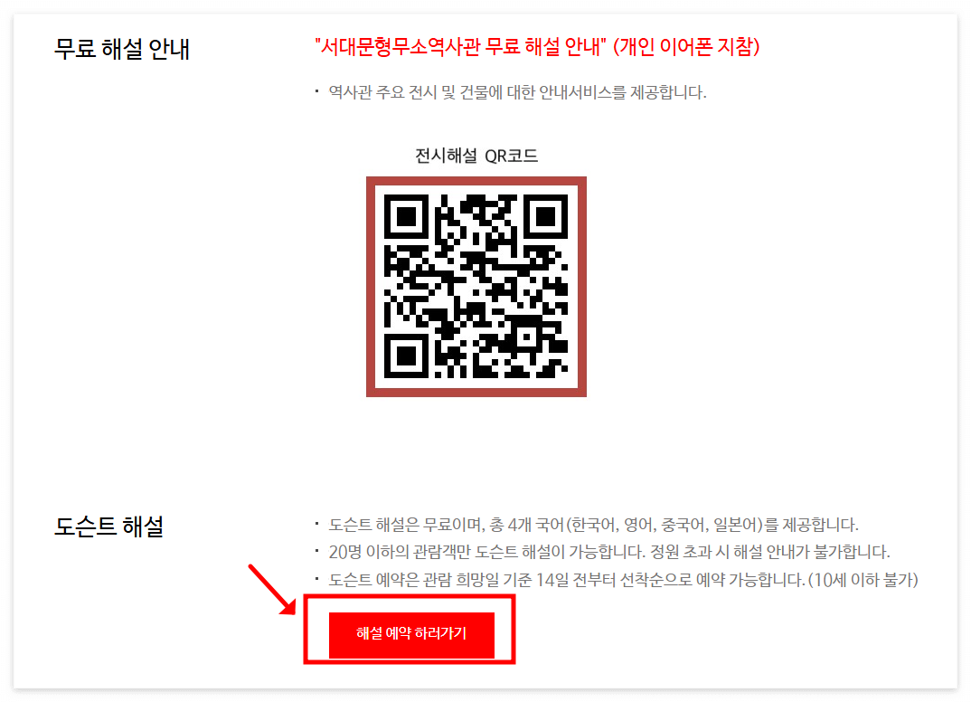 - 서대문형무소 역사관 홈페이지에서 온라인 예약