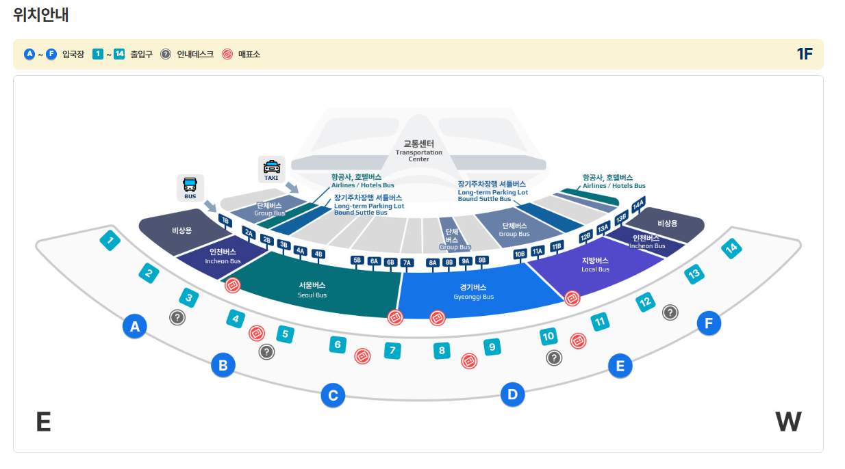 - 터미널 1 (T1): 1층 3B, 4A, 6A, 9C