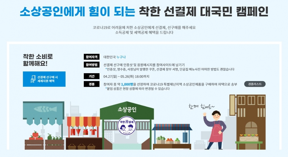 소상공인 지원을 위한 '착한 선구매·선결제' 캠페인 시행!