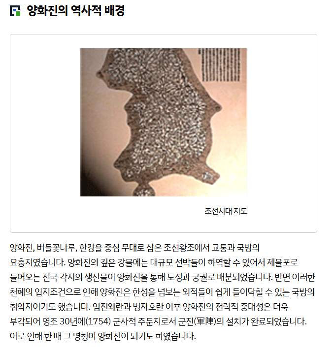 - 양화진 역사공원: 한강을 따라 조성된 공원으로, 산책과 휴식을 즐길 수 있는 공간입니다.