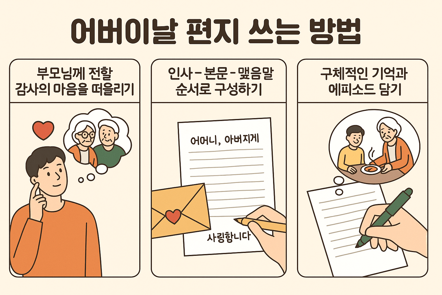 어버이날 손편지 예시 – 부모님 마음을 울리는 진심의 글 3가지