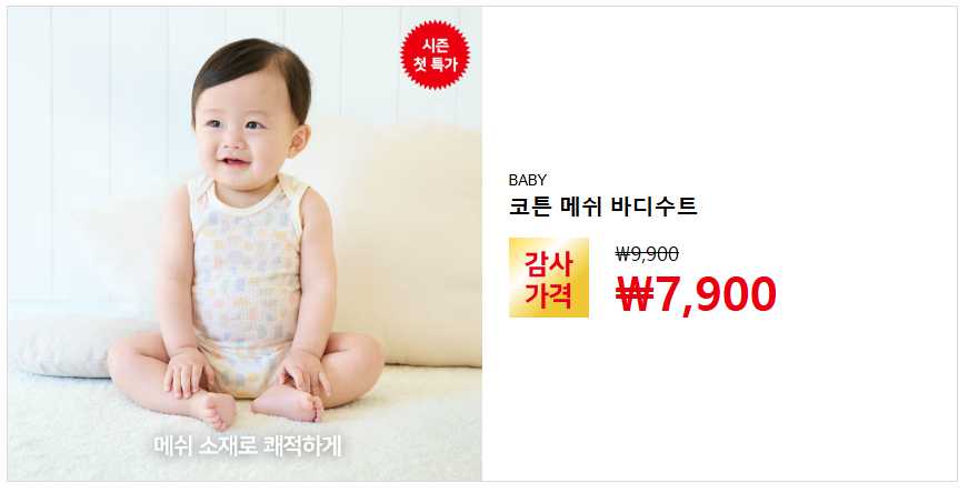 6) 코튼 메쉬 바디수트 (베이비용): ₩9,900 → ₩7,900