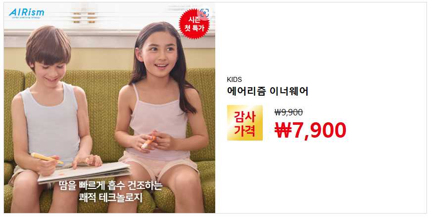 5) 에어리즘 이너웨어 (키즈용): ₩9,900 → ₩7,900