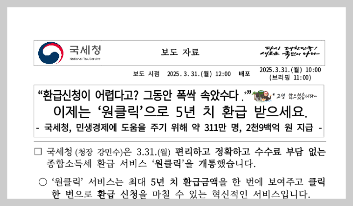 250331 국세청, 이제는 '원클릭'으로 5년 치 환급 받으세요.pdf