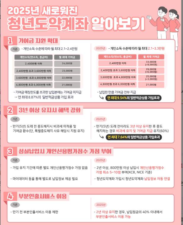- 5년 유지가 필수이므로 중도 해지 시 정부 지원금을 받을 수 없습니다.