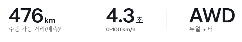 런치 시리즈 (한정판) | 73,000,000원 | 약 476km | 듀얼 모터 사륜구동 | 절반 지원 예상 |
