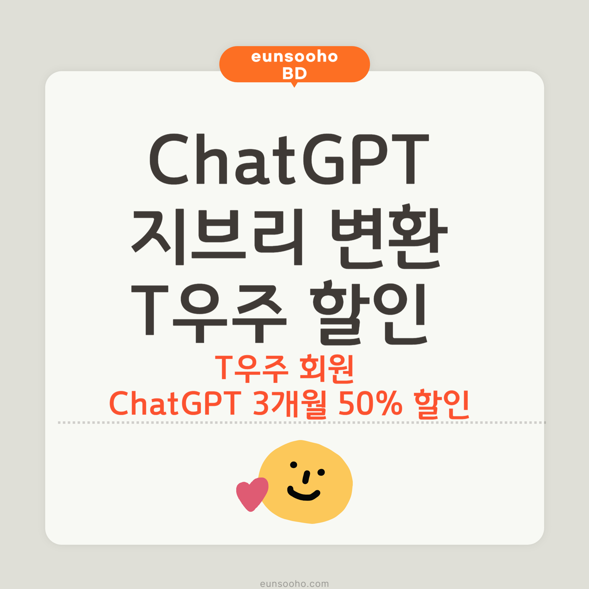 ChatGPT 플러스를 통해 지브리 스타일의 이미지 생성 등 다양한 고급 기능을 활용하고자 한다면, SK텔레콤의 T우주 할인 프로모션을 적극 활용해 보시기 바랍니다. 이를 통해 보다 저렴한 가격으로 AI의 최신 기능을 경험하며 창의적인 작업을 즐기실 수 있습니다.